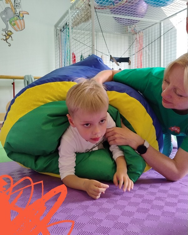 На 26-му благодійному курсі наша новинка в залі фізичної терапії - сенсорний тунель. Це не просто яскраве обладнання, а зручний інструмент для сенсорної інтеграції, який також можна використовувати як допоміжне обладнання для фізичних вправ.