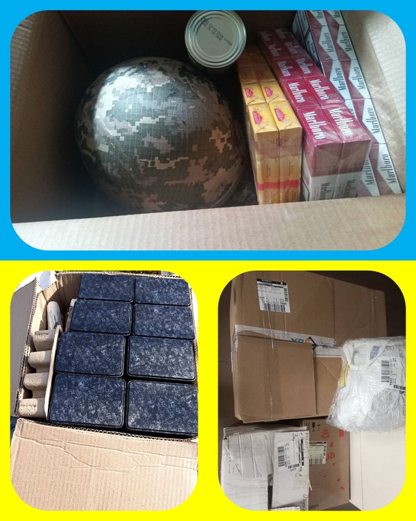 - для ЗСУ було відправлено бокси під сухпайки, шолом для захисника та цигарки.